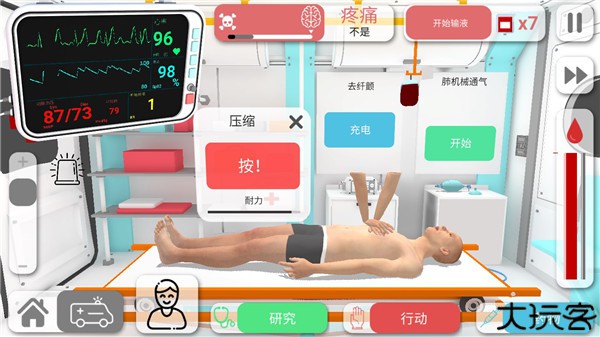 2、游戏详细还原急救仪器的使用流程,其中包含设备调试、药物配比与突发应对等关键环节。