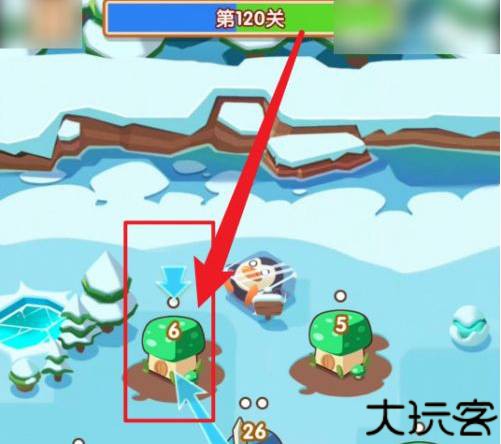 3、点击下方的技能图标,使用冰系技能即可依次击败所有的绿色蘑菇。