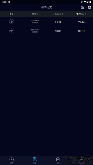 3、点击“历史”界面,用户可查看之前的测速记录。