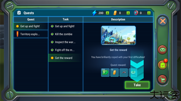 6、玩家在任务栏可以查看当前的任务,完成任务会获得各种奖励。
