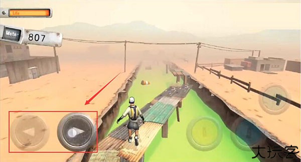 2、游戏中主角是一直固定着向前奔跑的,而玩家需要通过操作来越过各种障碍,左下方是负责控制角色左右移动的两个按钮。