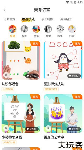 3、软件里有着专业老师同步辅导一对一加点评懂孩子更懂美术。