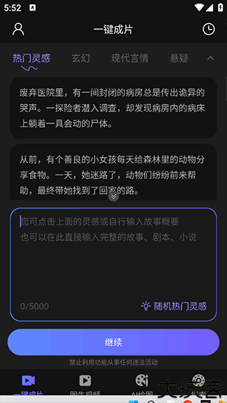 3、除了上传照片以外,你还能输入文本内容来生成视频。
