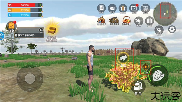 探索岸边与丛林,获取食物、水源及必要材料维持生存。