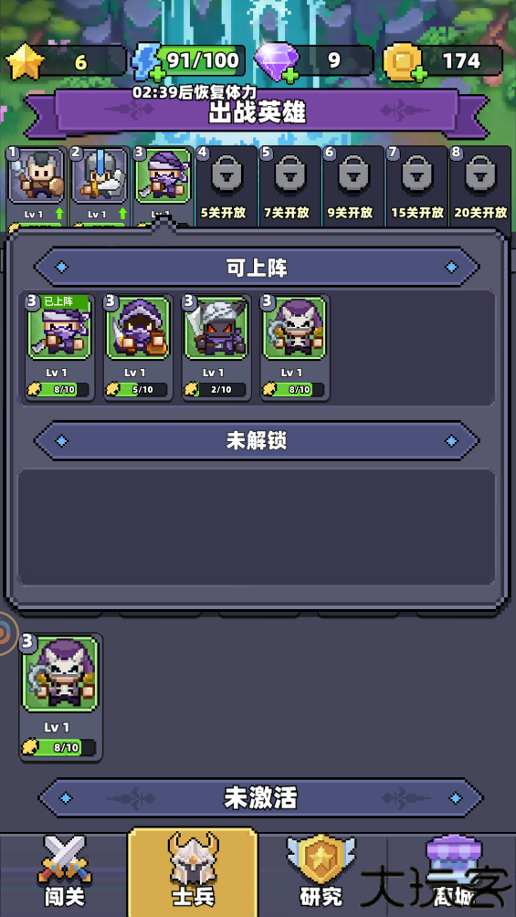 2、闲时上阵,讲究的是玩家对士兵的队伍搭配,通过派遣特定的英雄,能直接影响战斗局面。