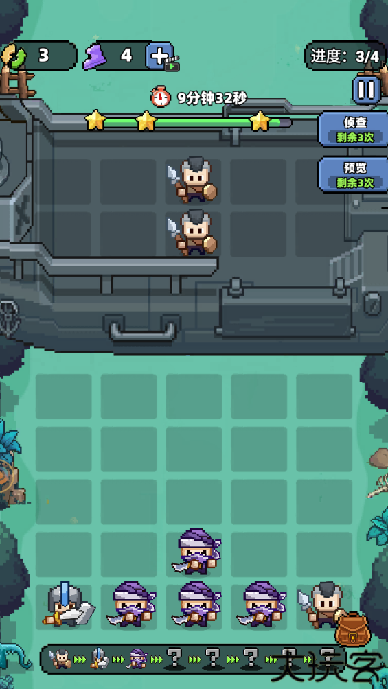 3、战前合成,考验的是玩家的合成操作,玩家要通过特定操作以获得更多的步数,并合出自己想要的英雄。