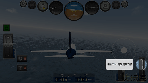 8、通过控制屏幕右侧的摇杆可以控制飞机进行驾驶。
