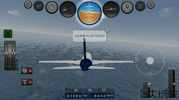 5、了解好操作之后 ,玩家将飞机调节到180的起飞速度,随后收齐起落架,收回襟翼即可飞行。