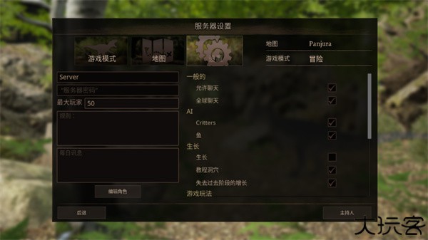 2、选择单人模式后,玩家需要为自己设置服务器的设定。