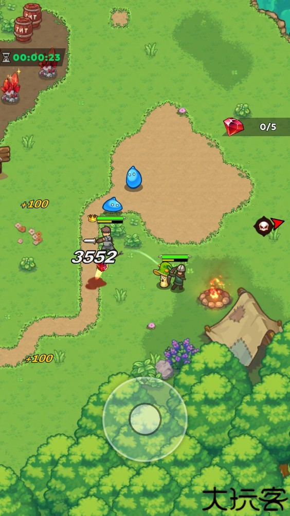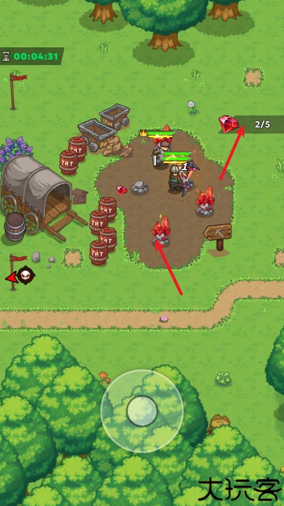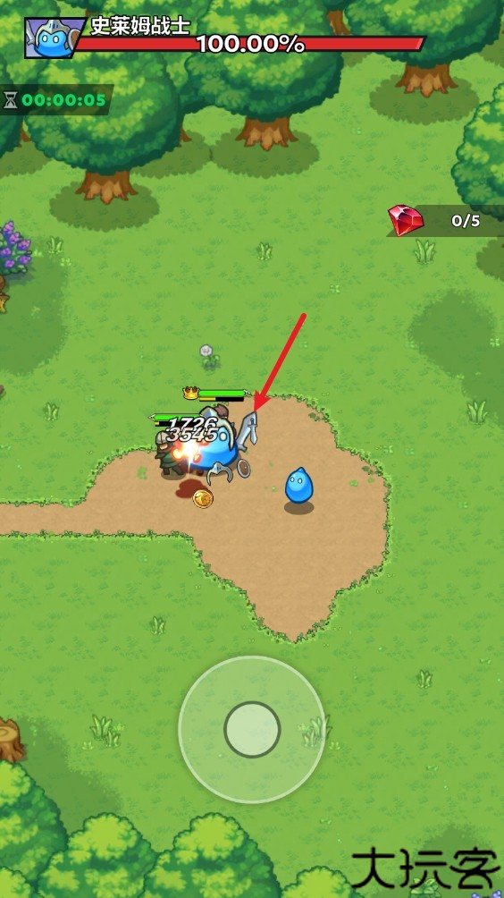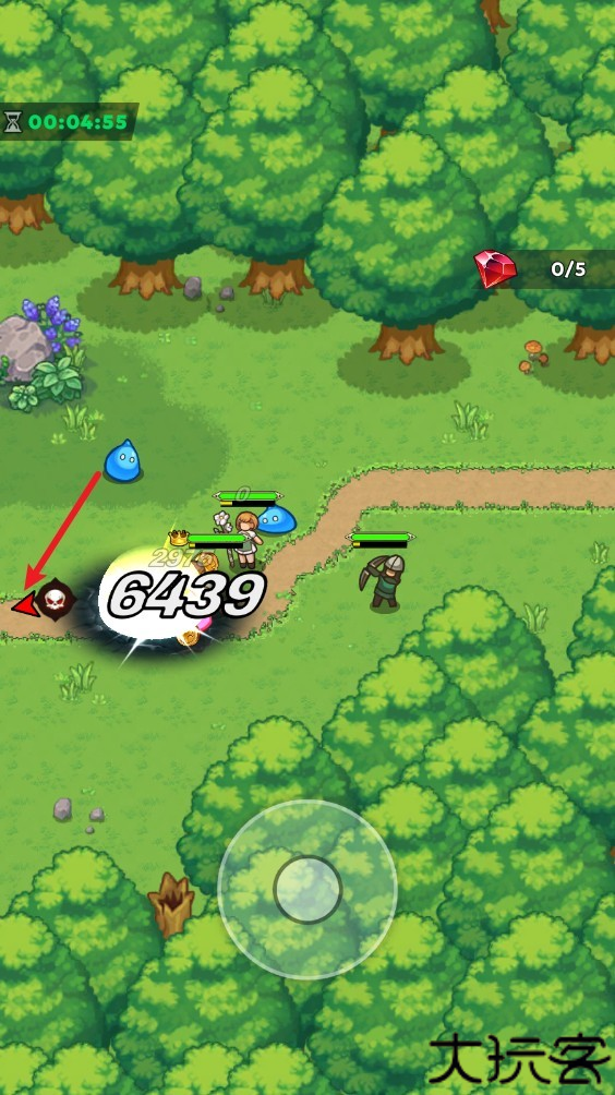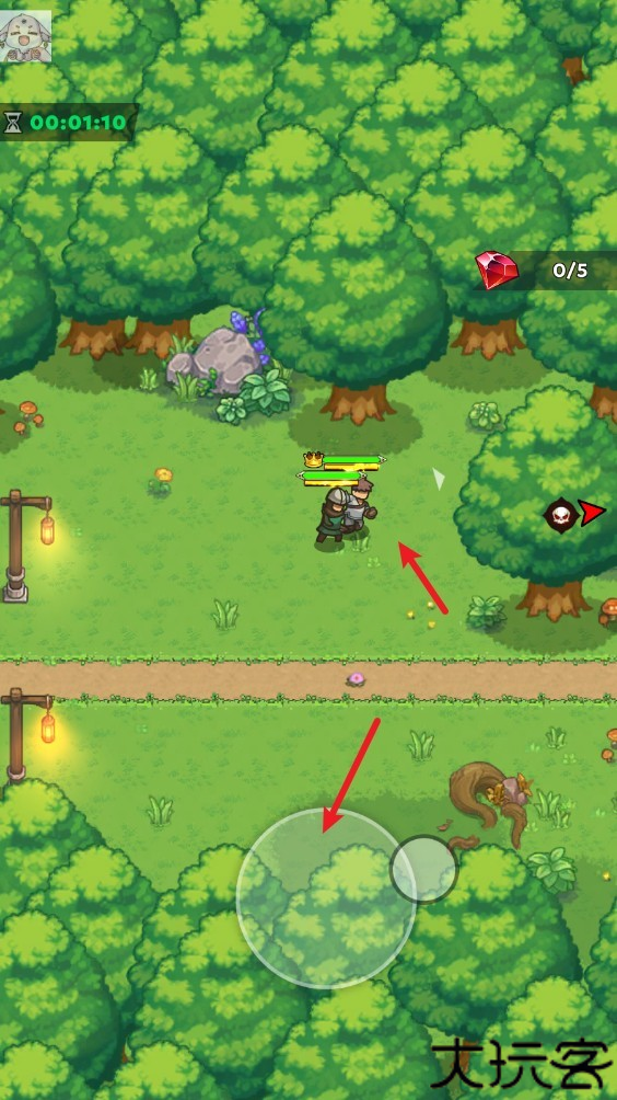 进入游戏后,通过虚拟摇杆掌控主角走向。