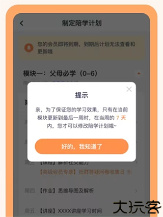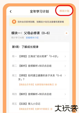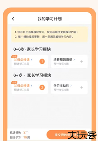 选择模块后,学习计划将按模块顺序更新,按周安排学习内容。