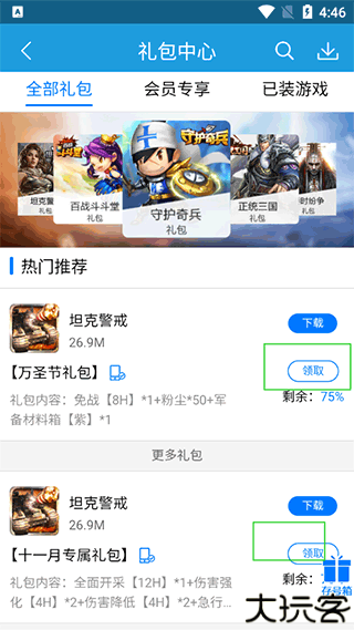 2、礼包页面展示了众多热门游戏的礼包,直接选择想要的即可领取。
