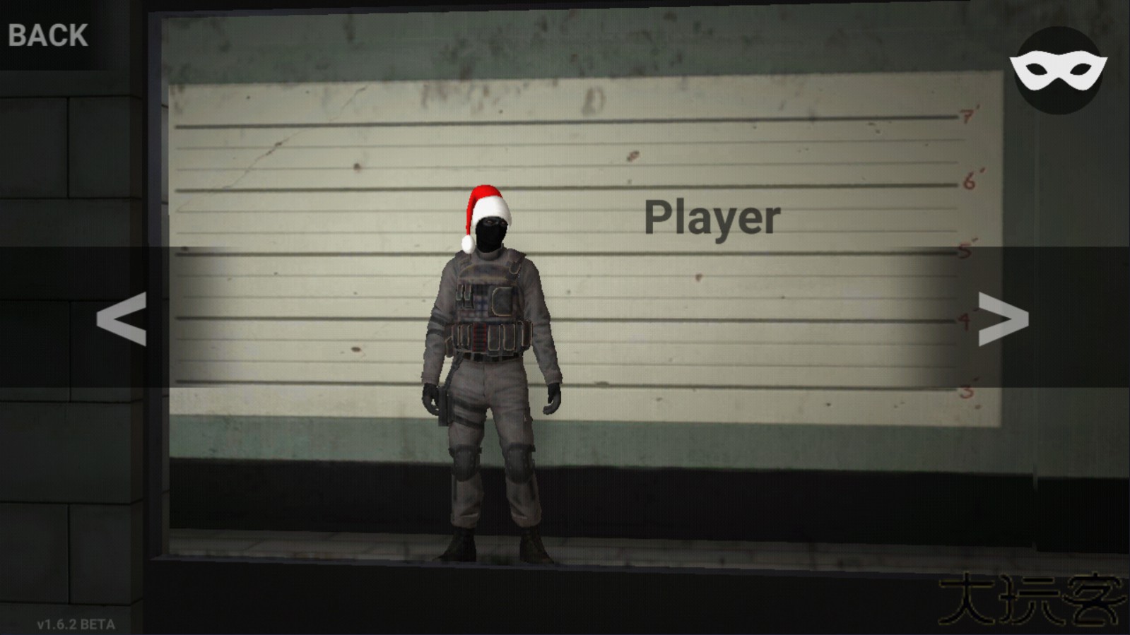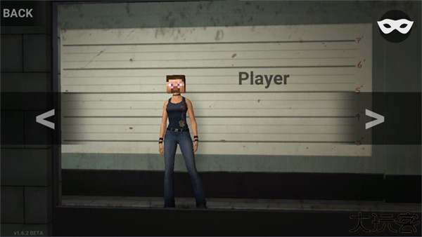 1、玩家进入游戏后,点击左右侧的箭头可以更换造型,右上角的眼镜图标可以遮挡整个脸部。