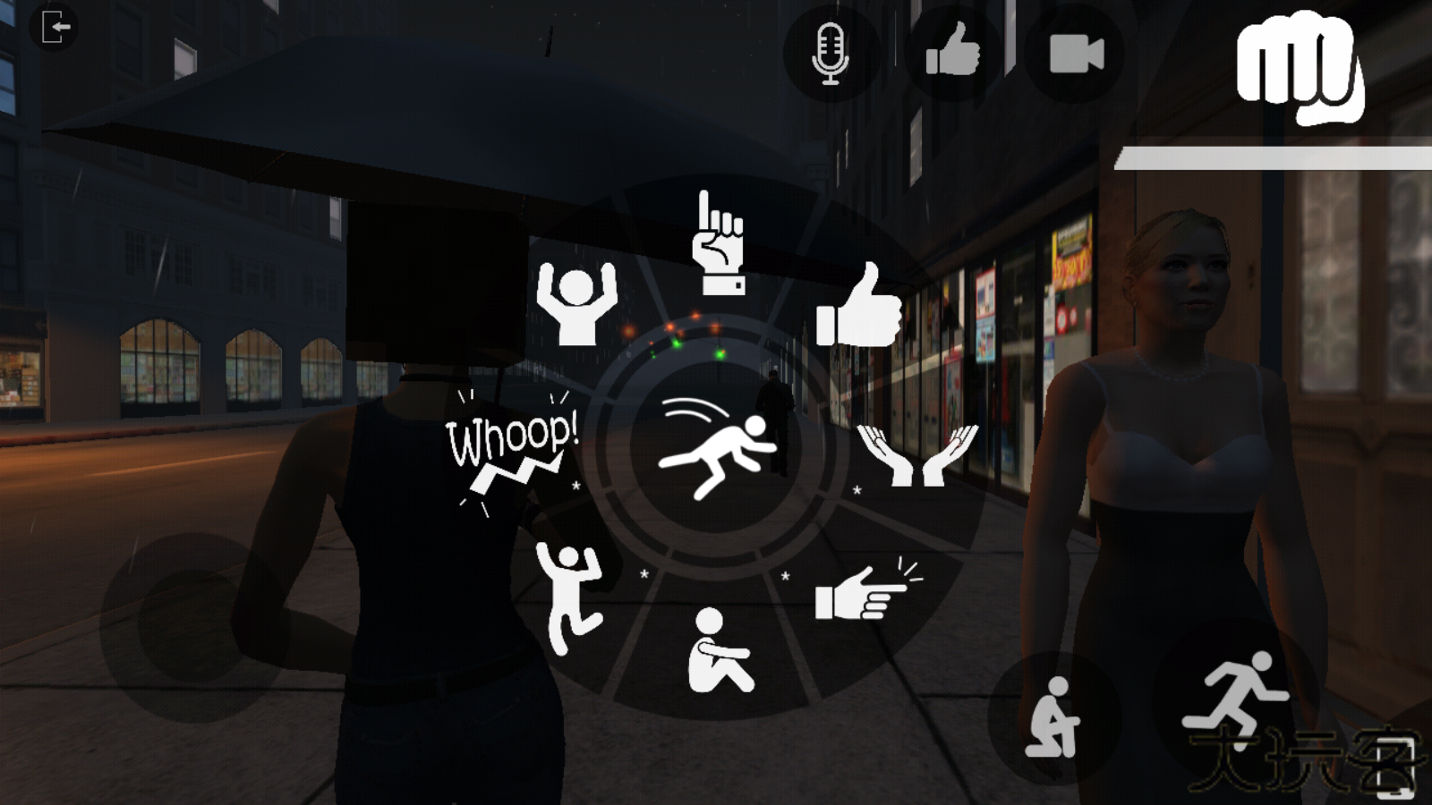 7、点击上方的大拇指,可与角色进行互动或摆放动作。