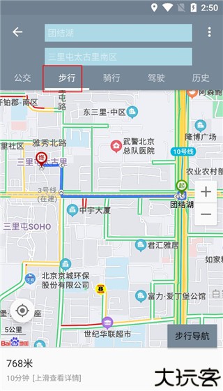 选择所需出行方式,准备进入导航模式。