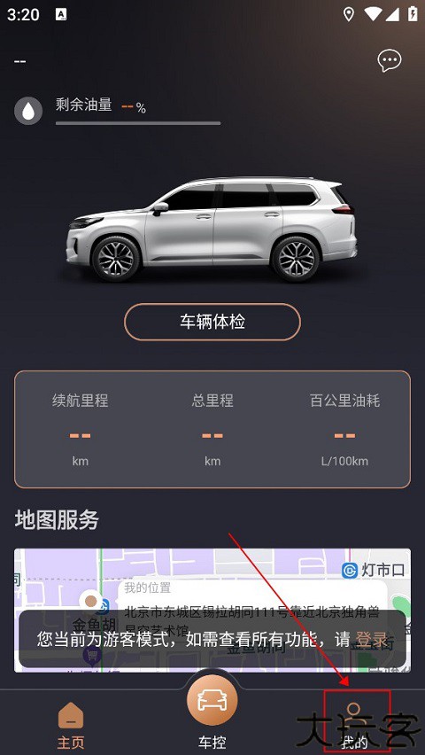 1、在软件上查看汽车的各项关键数据,如油量、续航里程、总里程、百公里油耗量等。
