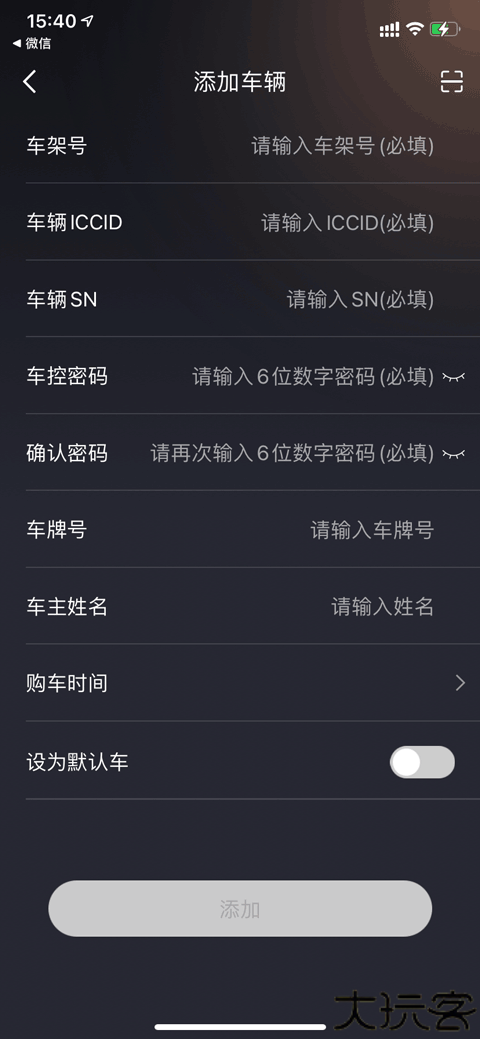 3、完成后,点击绑定,在这里输入你车辆的详细信息进行添加。