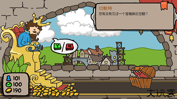 宝箱怪往往都是同步都是财富的象征,在这它这往往可以获得很多的财富,当然可能在此过程中玩家的幸福和人口会得到损害,如果不是万不得已的时候,不建议点选它。