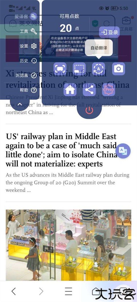 轻触悬浮窗口,选“自动翻译”功能准备区域翻译。