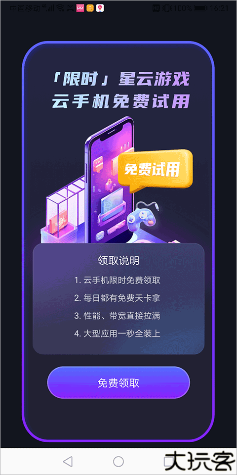 2、接着进入云手机页面,即可启动云手机。