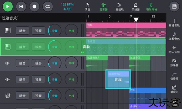 1、需要了解音轨和音段,通过编排制作一首完整的乐曲。