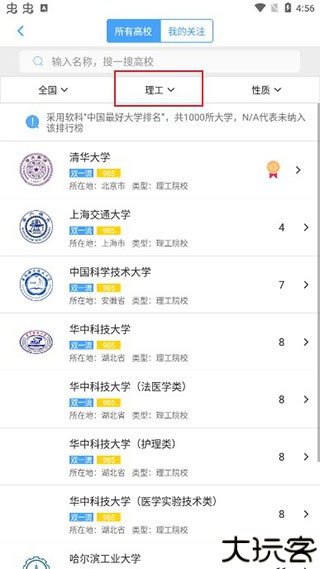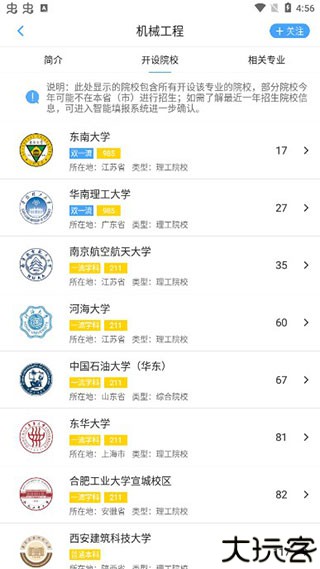 6. 也可以根据自己的学科类型进行各种高校的选择,用户能够详细查看每一所高校的详细资料。