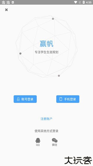 1. 打开赢帆生涯app,用户输入手机账号进行登录,也可使用第三方软件进行登录。