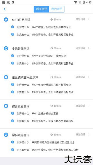 3. 例如,用户点击“做测评”栏目,能够进行学科、性格、职业、综合素养进行测评。