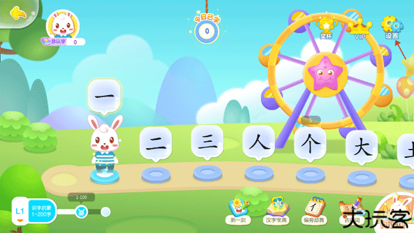 1、打开软件,可以看到里面有许多的汉字可以学习,遵循着由简到繁的原则,先从中文数字开始学习,后面再是复杂的汉字学习。