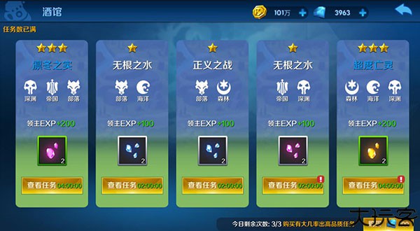 6、可花费钻石追加任务条目,并有几率获取高等级任务。