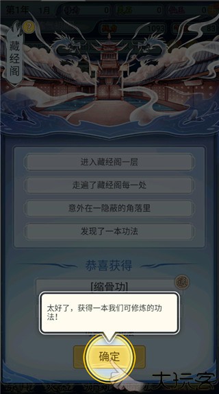 2、可以在藏经阁里获得一部功法,就可以开始修炼了。