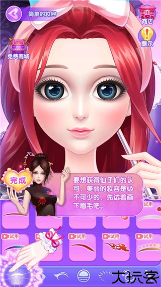 3、正式进入挑战后,可以先给公主画个眉毛。