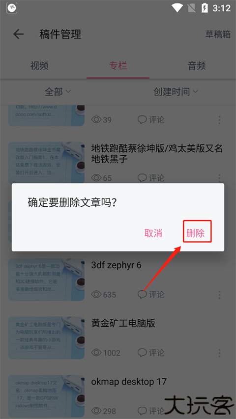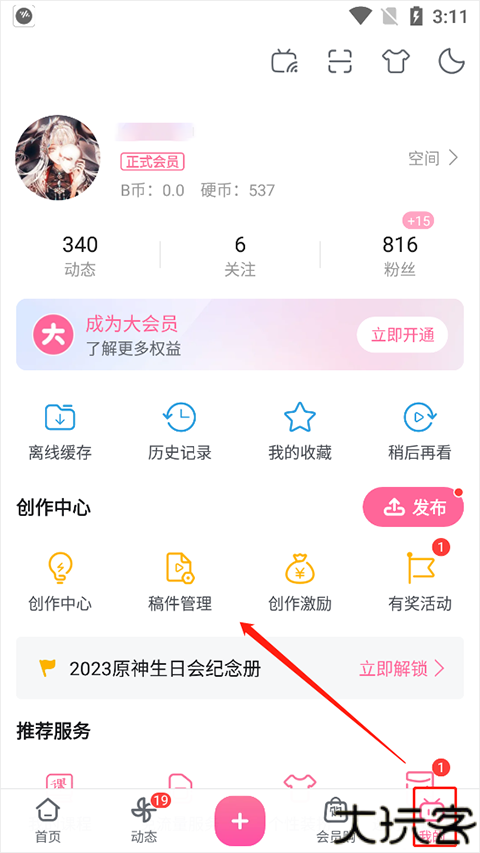 在“我的”界面找到“稿件管理”入口并进入。