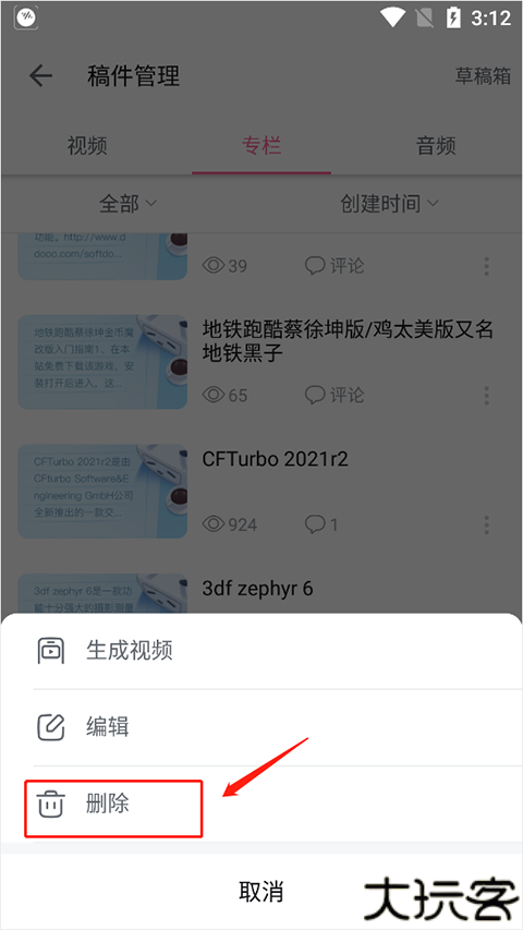 点击该稿件旁的“三点”按钮进入操作选项。
