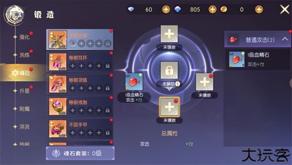 3、每一件装备可以镶嵌魂石,最多镶嵌5枚,提升各种属性。
