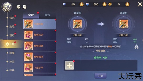 4、装备升星需达到橙色以上品质,有一定几率额外获得属性词条。