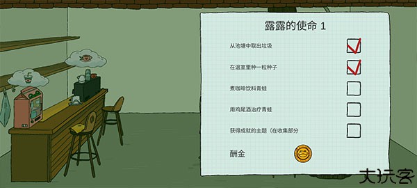8、在右下角的锦囊百宝袋,可以拿出露露的使命任务,玩家完成相应的任务就会打勾,全打勾就能获得丰厚酬金。