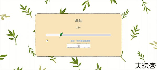 2、此时界面就切换为中文显示,随后滑动图示树叶,确定自己的年龄点击“OK”。