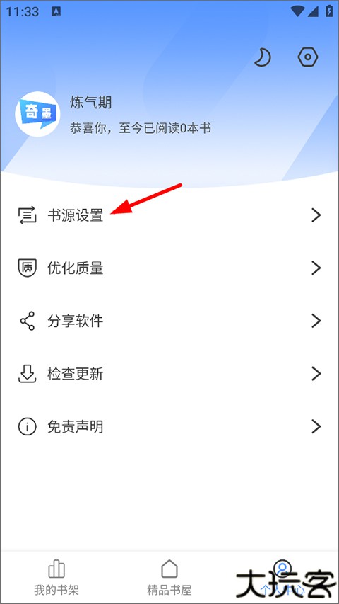 2、在个人中心页面里可以进行阅读设置、优化书籍质量。
