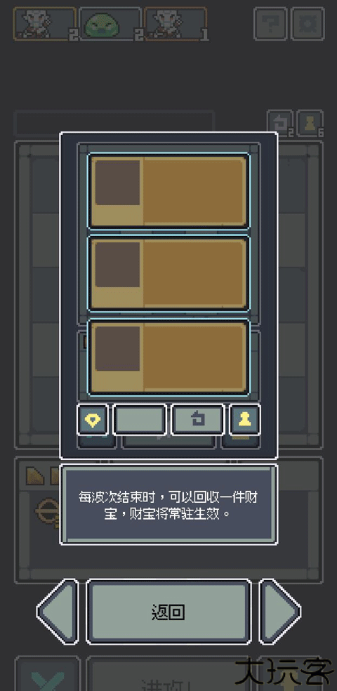 6、每波介绍后,玩家就可以回收一件财宝,财宝也会常驻生效