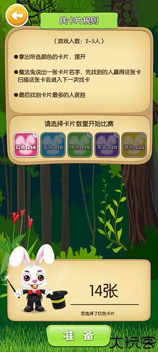 选定统一色系的卡组后准备开始,依据提示寻找目标卡片并完成扫描。