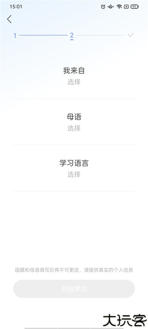 2、在去选择姓名、名称,设置地区、母语以及学习的语言。
