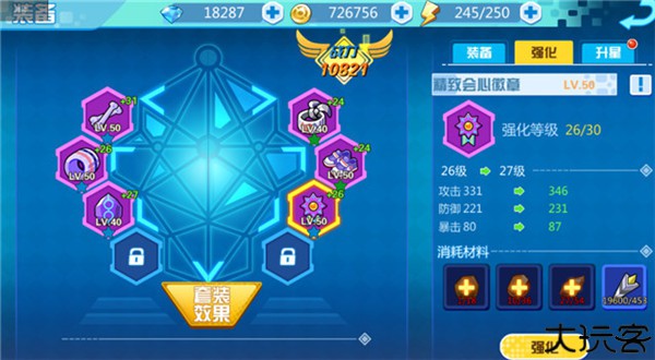 3、装备强化需要消耗宝物强化基因等物品,可以通过扫荡剧情关卡来快速获得。
