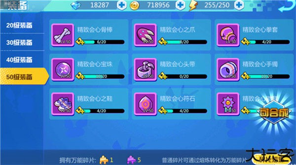 在集齐相应装备的碎片后,系统就会提示该装备可进行合成,如果碎片数量不够,还能用万能碎片来凑哦。