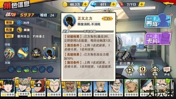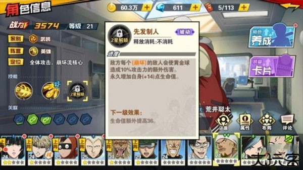 震撼特效与超强技能,让战斗更加火爆!创新的战斗机制和琦玉的超萌演出,带玩家感受一拳秒杀的快感。