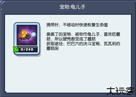 在野蛮人大作战手游中,这是奥奥丁最最疼爱的宠物,他将其称作是自己的龟儿子。并且它特别喜欢吃蘑菇,甚至连最珍贵的硬壳都逐渐变成了蘑菇。而作为长寿的一种标志,能使携带者,在不移动时快速回复生命值。蛮蛮们终于不用再担心找不到鸡腿来续命啦。