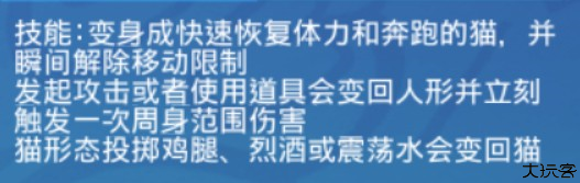 (1)在猫状态下能够提升移速,而且只且算一次体力消耗,只要不攻击就不会破除猫状态,所以尽量保证自己维持在猫形态。