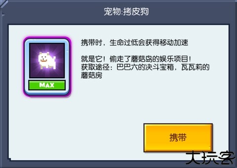 这是你的一只狗,携带时,能让你在生命值过低时加快移动速度。当你生命过低时一般需要什么,当然是逃跑了。那么这只拷皮狗无疑能增加你的生存几率,可爱的白色小狗在游戏中摇尾卖萌,铲屎官们注意啦。