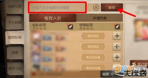 3、再输入框中输入对方【名字或者数字id】点击【搜索】。