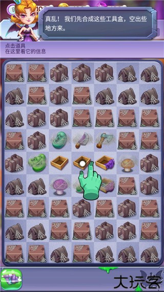 4、玩家可以先合成画面上的工具盒,腾空出一些地方出来。